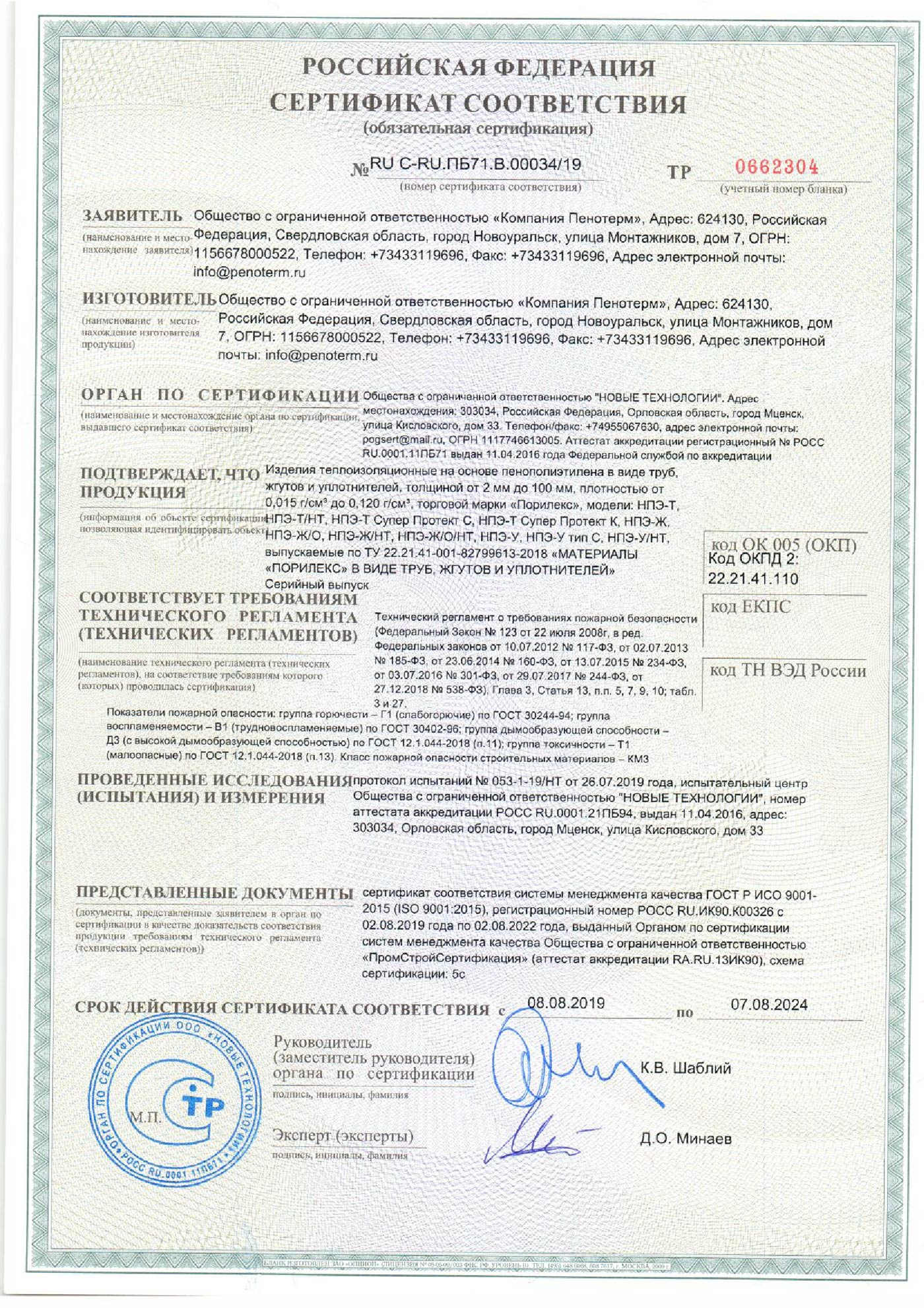 Группа горючести: Г1