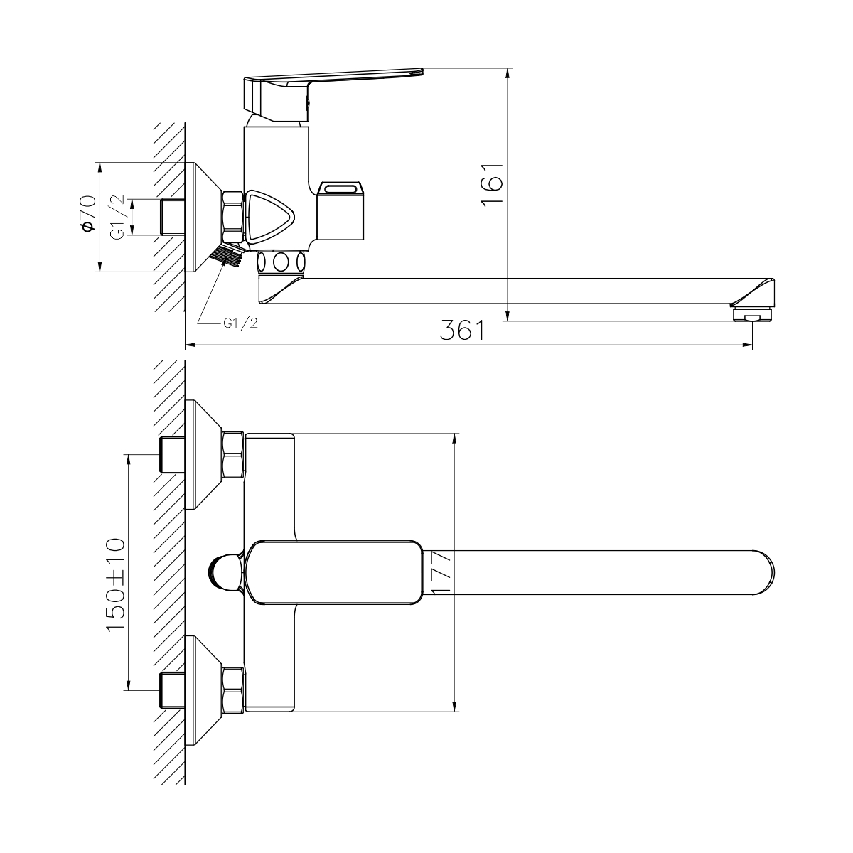 - Излив: L-образный, длинный, поворотный, длина – 300 мм
