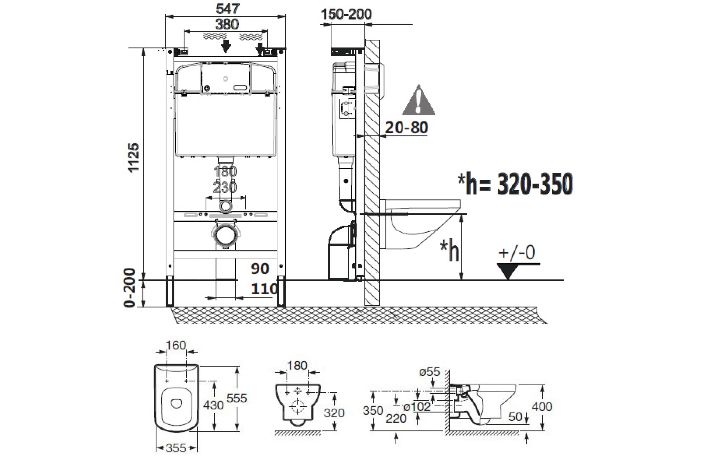Размеры унитаза: 355х350х520 мм